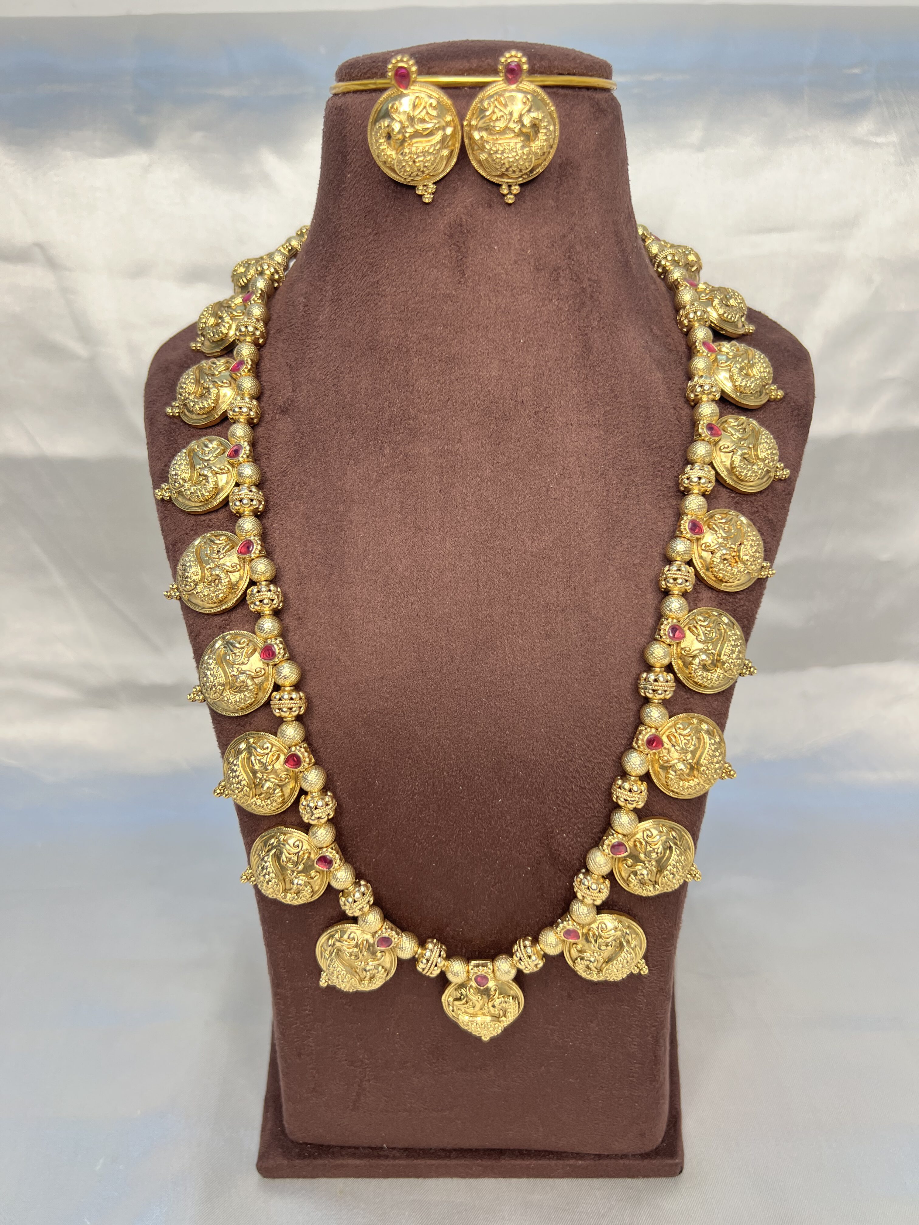 The Temple Aesthetic: The classic coin and deity motif faithfully mimics the revered look of authentic, antique fine temple jewelry.