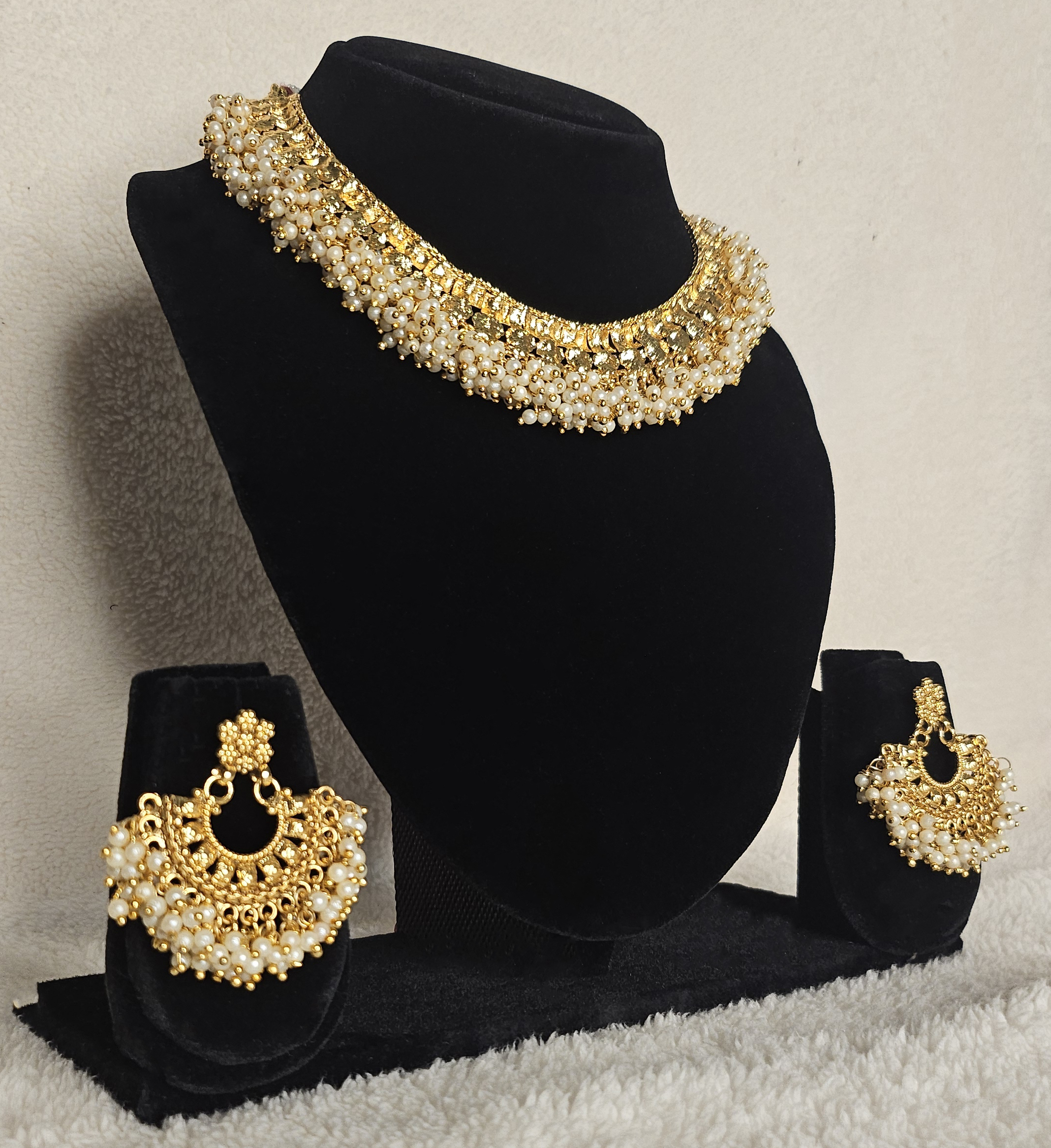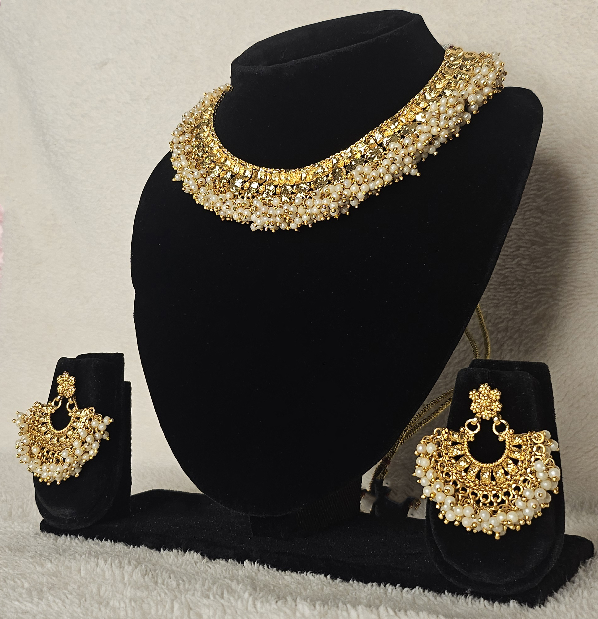 Heavy Pearl Cluster Necklace & Chandbali Set